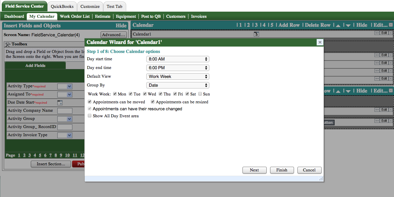 The Calendar Wizard will appear. You can now edit your preferences. Click ‘Finish’ when done.